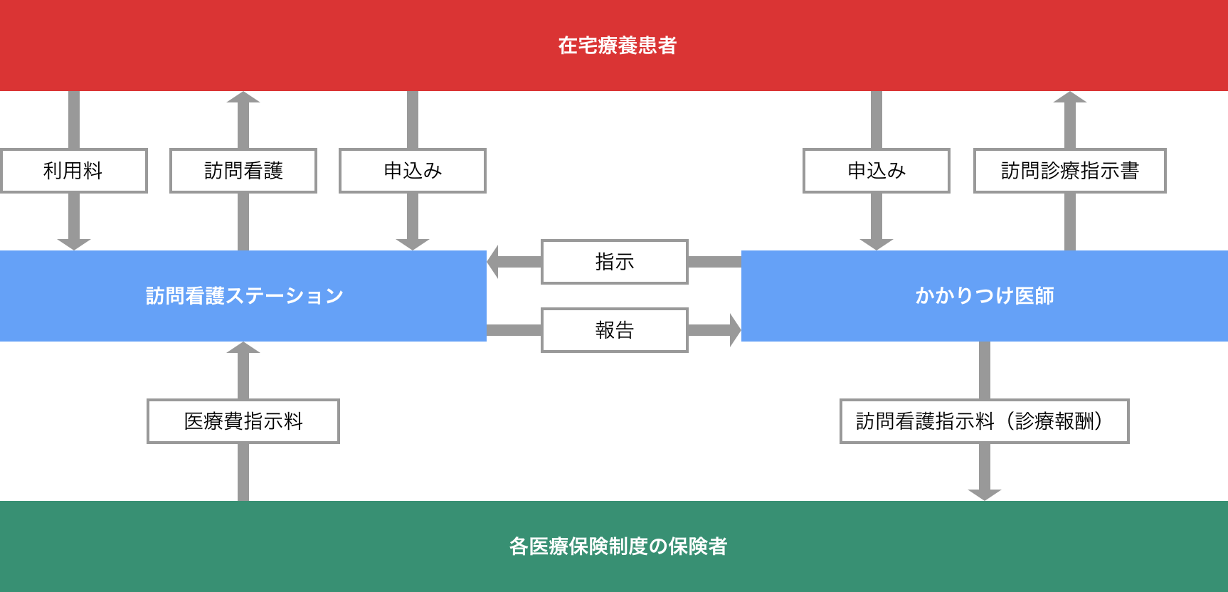 ※看護師などの交通費実費や休日訪問などの特別料金は被保険者の負担になります。